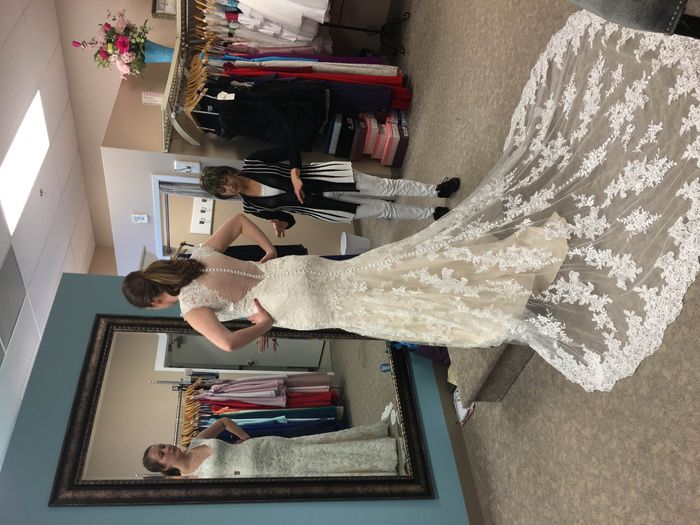 So over a year ago I bought my dress (and I still adore it) but the one thing that it doesn't have that I wanted was buttons down the entire length of the train. What do you think? Does anyone have pictures of buttons down their train? More pictures...