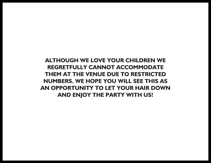 Okay so, i just want everyone's opinion on this. My FH wants absolutely no kids unless they are in the wedding party. As i see his point because kids tend to be a little crazy especially at an event with mulitple children. The children i plan to have...