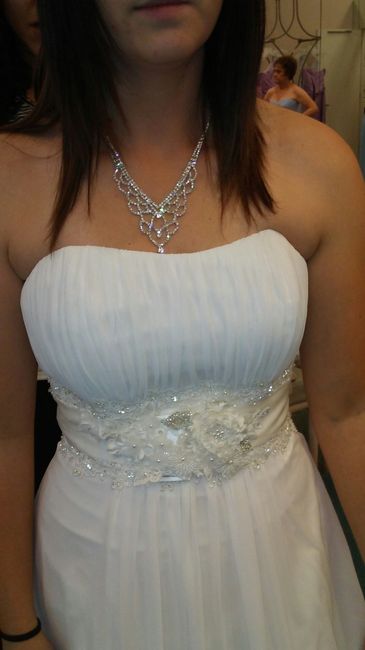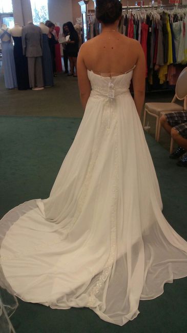 Hi everyone I have an A-Line dress see below it has a really long train and am thinking of doing a fingertip length veil, but thought maybe a cathedral length would be better any thoughts?