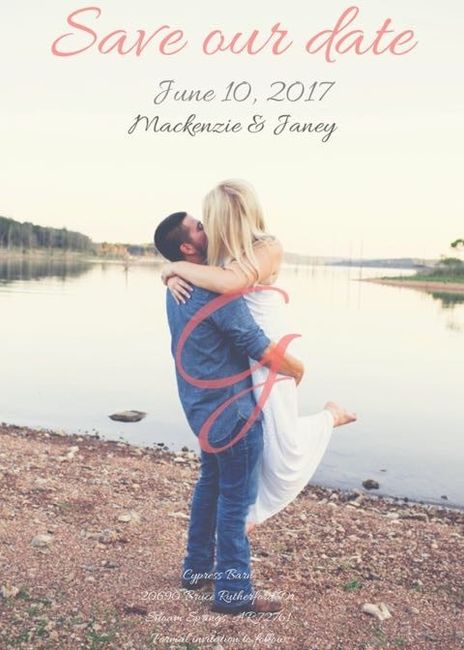 Hey! So I'm sending out my save the dates soon, so the designer asked me to come up with a rough draft. I was going to draw my vision but I found an app instead that worked. So basically they will be a photo, then on top of the photo is a vellum...