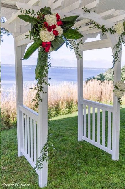 My uncle made a beautiful arch for my cousins wedding a few months ago, and I will be using it also. My ceremony site is a garden, but will not be fully bloomed when our wedding takes place, so I am looking to break up all the green with some blooms....