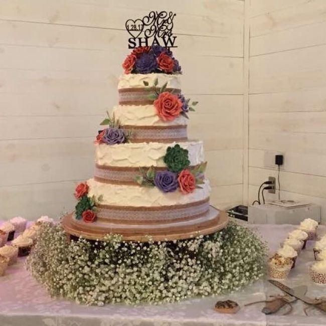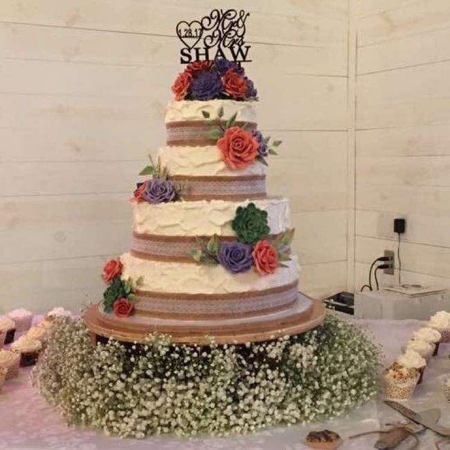 I am still trying to decide how I want my cake. Our colors are burgundy and rose gold. We are thinking of having an ombre effect but I'd love to see whatever one else is doing.