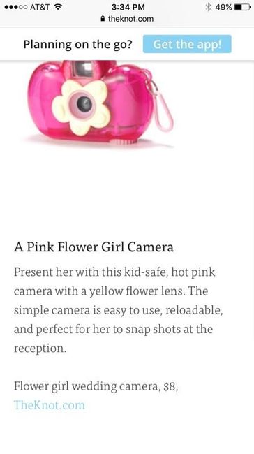 Does anyone know where I can get this cute flower shaped camera? It's a suggested flower girl gift on theknot.com, they are suppose to sell it when you click the link but nothing comes up. I haven't been able to find another flower typed camera...