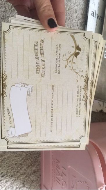 Hey all! So I got this pink mailbox (don't laugh!) for only $10 and I have advice cards that go with our theme (love birds). I thought guests could put the cards in the mailbox and it would be adorable! FH thinks it's silly. Now I'm self-conscious,...