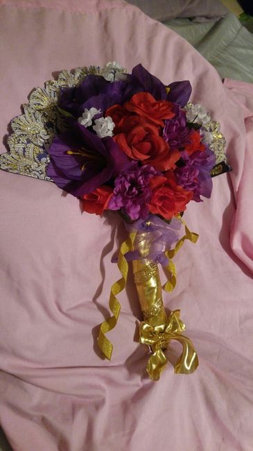 3611 days agoThis is my DIY Bouquet made with my fan, and silk flowers. Would have loved to had real, but allergies are too bad. I still have 4 more to do !