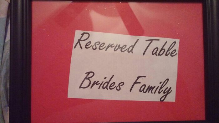 So I went to the dollar store and got some picture frames to use for our reserved tables for family. I figured why not they are a dollar they will be used in the house later if we don't use them. This is the idea I had. I did this one in about 2 mins...