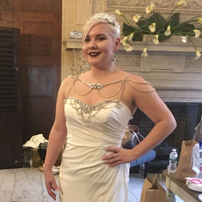 Hey guys! I wanted to know y'alls opinion on my lipstick. I went to try on my dress the other day and I was wearing dark make up. I know it's edgy but that's who I am. I wanted to know if it looked good or not. Also, opinions on the veil and tiara? ...