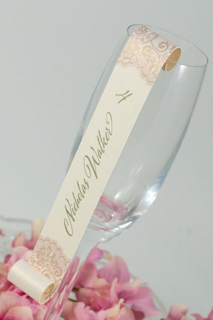 My vision is slowly but surely coming to life. At our catering meeting yesterday I asked about champagne escort cards. They only come to 1.50 extra per person and it's something I really want. I'm just wondering if anyone had drinks as escort cards...