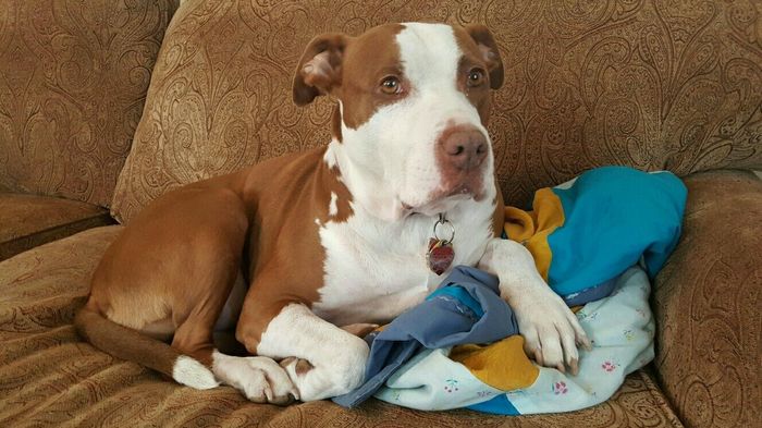 Snuggling on the couch with pup tonight drinking wine since DH doesn't come from his work trip until tomorrow. I moved the slightest bit and she Weasled herself into my spot and stole the pillow. She loves watching tv-especially if there is animals...