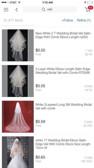 Okay, so I have gotten almost everything at Davids Bridal, my dress, shoes (clearance), sash, and jewelry. I haven't got my veil yet though because i just can't get myself to spend 150 on a veil when i only am going to wear it down the isle and maybe...