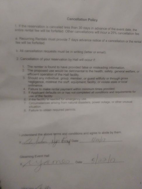 Hello my fellow wedding wires, me and my FW had a argument this past week. I called my venue to cancel within 24 hours I called back my venue to say don't cancel. I was told my venue is now taken with a deposit. Upon looking at my contract it states...