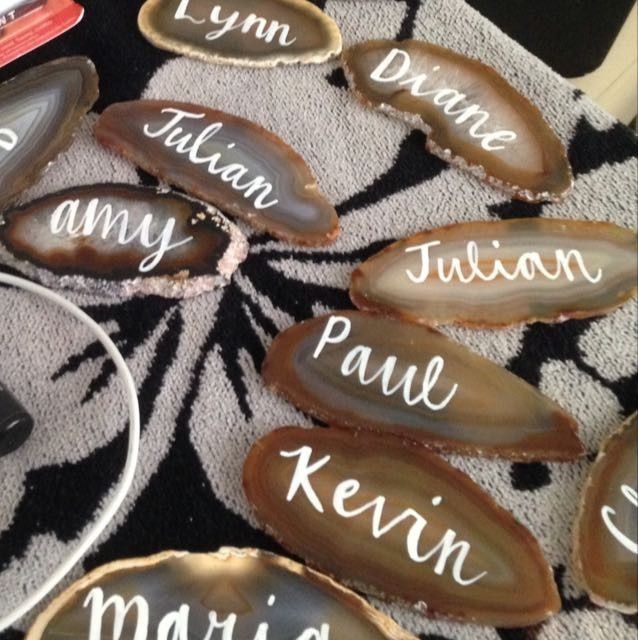 I want to match my invites and std somewhat within the wedding. What do you guys think about these escort cards/ rocks? Be honest :-)