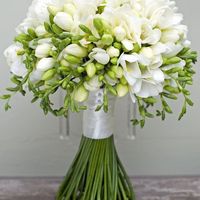 3417 days agoWe're pretty much only doing flowers for bouquets and boutonnieres and I want to keep them visually simple, using only whites and greens. I'm loving freesia right now because it's has some interest with looser stems and doesn't feel stuffy when...