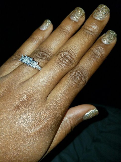 I am in love with my engagement ring! I was totally not expecting such a beautiful ring. A White Sapphire round stone and black diamonds along all sides. What do your engagement rings look, ladies?