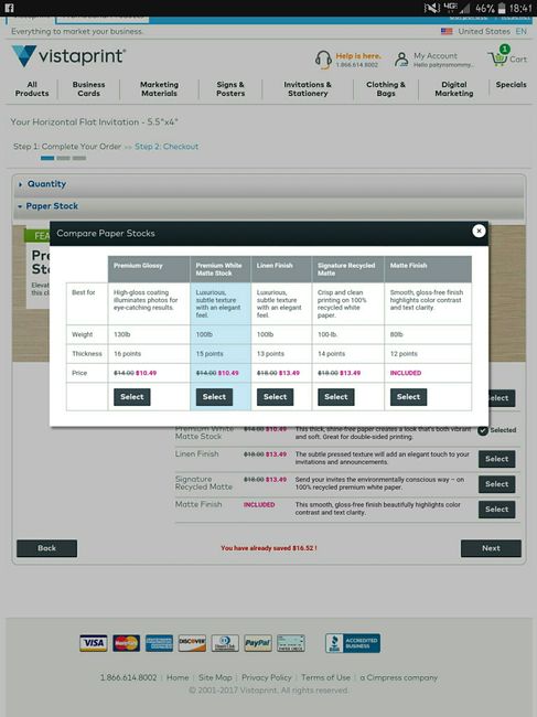Ok, so I'm trying to order my save the dates/invitations on vistaprint, I'm not sure which paper to use! What did you use??