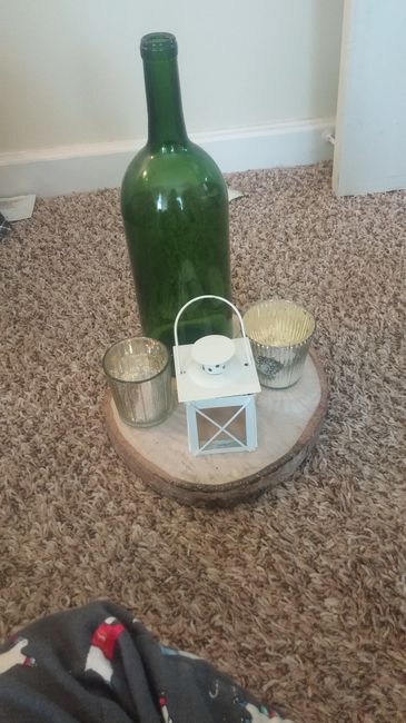 So here is the base. I plan on getting long candles for the candle stick holders and adding some lace doilies. Also adding flowers but not sure what will look good. Where should I go from here or are they all dumb lol. ETA: these are unfinished...