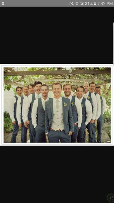 I had a vision of my bridesmaids being in a wine color. Davids bridal told me this color was discontinued. So I've decided on Apple. My fiancé wants to dress casual and his groomsmen casual too. He wants dark blue jeans, white under shirt and a vest...