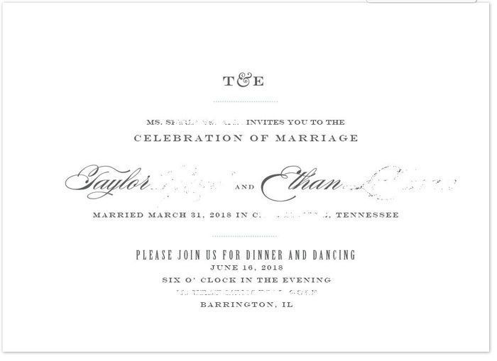 Hey all, I got my invites on sale on Minted and just got proofs. I love them but there's a hangup on wording I'm hoping you can help with! The way they originally had it was "Please join us for the wedding of Chip & EL" But I really wanted to add...