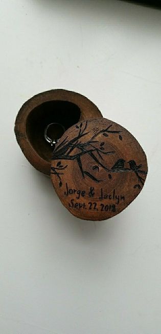 This was a little coffin I found at Michael's last year for a dollar so I made it into our ring box. It's an ode to "Til Death Do Us Part". It's a bit demented but it's us. What are you all doing to present the rings? Ring bearer? Something else...
