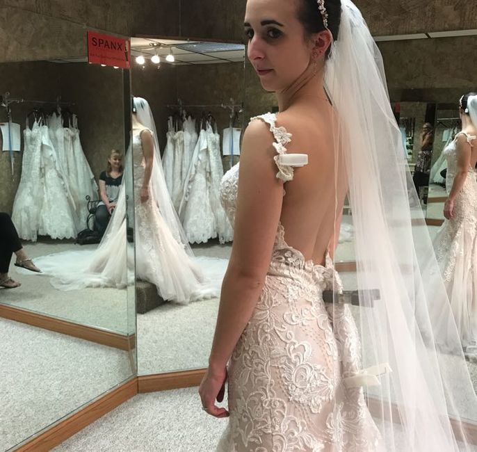 I just scheduled my first fitting!! Yay! I’m so excited to put my dress on for the first time! They said to bring my shoes and wear the undergarments I’ll be wearing. Umm never thought of that. I’m pretty sure I can’t wear a bra at all with this...