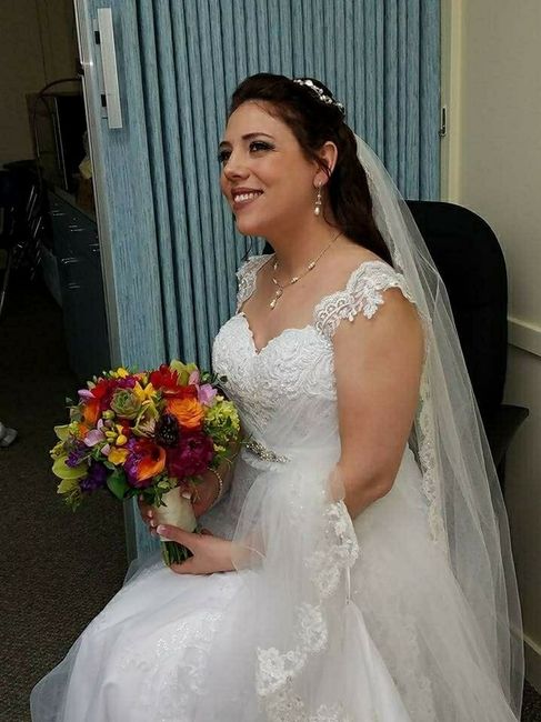 I'd like to see some dresses on real brides! I've kinda felt discouraged about my dress since I bought it because the lighting/pose I was in was weird in photos plus I just see photos of models in the dresses. Please post some pics of your dresses