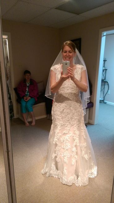 After the first seamstress did an awful job on my dress, I took my dress to an incredible seamstress and my dress is my beautiful dream gown once again! *For those who remember my post about mom wanting to try on my dress?...yes, she started that...