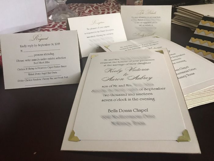 First, I ordered from a company who sent me invitations that were wrong. We scrambled and found someone who printed thermography in 2 day, they came back perfect but the paper color is off with the rsvp, detail and reception card. No one in town had...