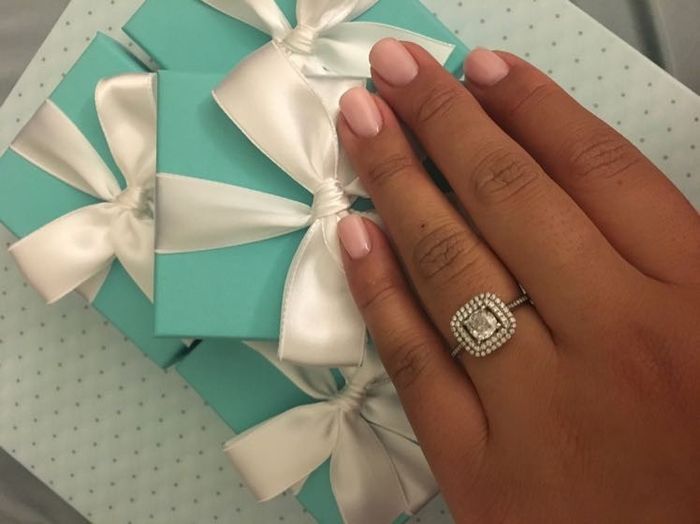 I am in love with my engagement ring! I was totally not expecting such a beautiful ring. A White Sapphire round stone and black diamonds along all sides. What do your engagement rings look, ladies?