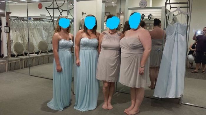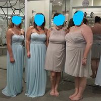 A little background. I will have a MOH, a Man of Honor and a bridesman. My FW will have a Best woman and two bridesmaids. Since we are both women, it's a little different. But we found the girls dresses today. Attached is a picture. The girl to the...