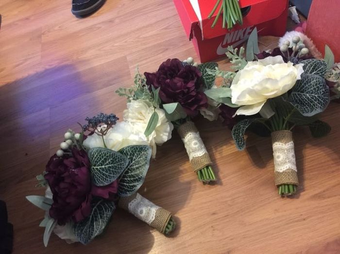 Made my own bridal bouquet! In the process of making my bridesmaids/maid of honor bouquets as well as boutonnieres! Just need to put burlap around the stems! I'm a September bride! Anybody else?