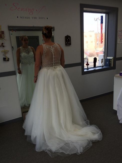 I had my first dress fitting today! A little back story.. When we ordered the dress the size that was recommended was going to be very big and I only had to lose 1.5 inches off my waist, all other measurements would fit. My mom is always concerned...