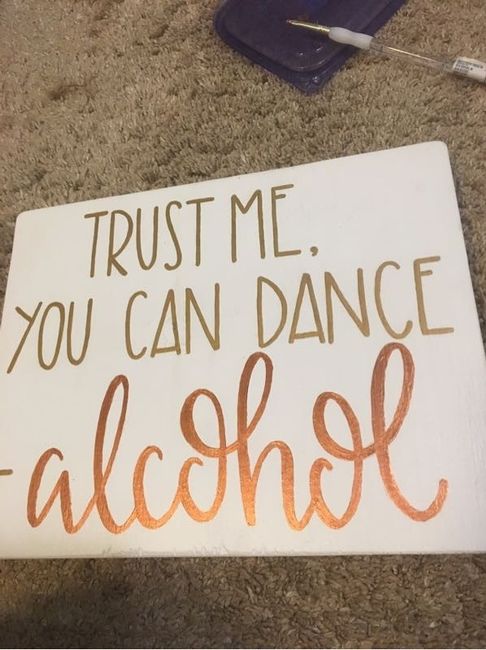 Just got done with this sign for the bar at our wedding! I just traced it in the colors I wanted (I bought the sign and can't do calligraphy lol) but one of my wedding colors is copper so I love how it looks! What is everyone else working on right...