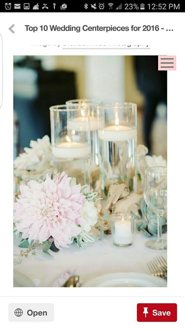 FH and I doing a trial run this evening with our floating candle centerpieces. We have tried a few things here and there to put in the vase, but haven't exactly lover anything yet. So! I would love to see everyone's floating candle centerpieces for...