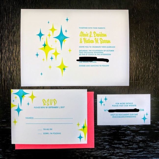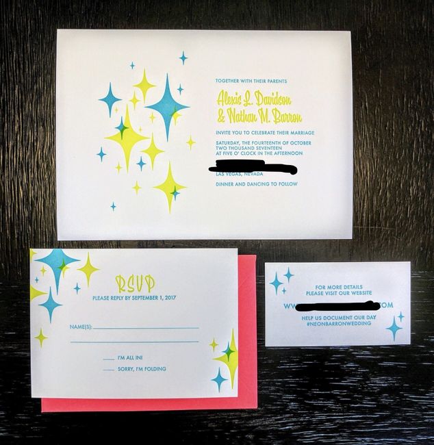 Just picked up our invites from a local letterpress yesterday. So excited for how it turned out! My only complaint is the ! On the rsvp looks like an i. Oh well, not gonna let it get me down.