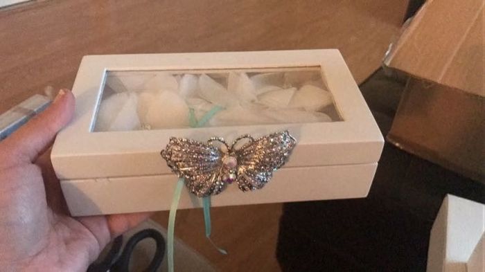 I don't want a pillow for the ring bearer, which is FH's 9 year old son. I like the look of ring boxes. Does he just hold one box with two slots or one? I don't like rings tied with string. I want them to be more accessible than the time it takes to...