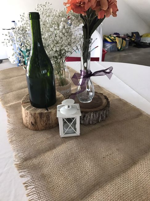 Went to the venue today to play with their decorations and mock up some centerpieces. I'm not a crafty person but FMIL is, they would look like the picture but the flowers would be burgundy, ribbon navy, and wine bottle will be wrapped in hemp/twine...