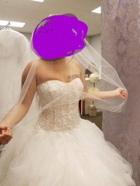 Ok everyone I posted my delima with my dress and my sleeves not being what I expected . Well here is a new pic with what my seamstress came up with it's a little sleeve but better than nothing on my arms and I think they will be beautiful it's the...