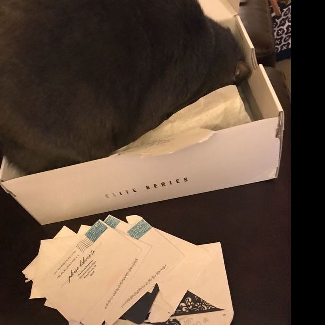 It's almost monday but here's a pic of my fur baby helping me craft to cheer you up. I'm in the process of making diy place cards. She decided she needed to sniff the box where I'm storing them. I think she approves? I'd love to see more fur babies!...