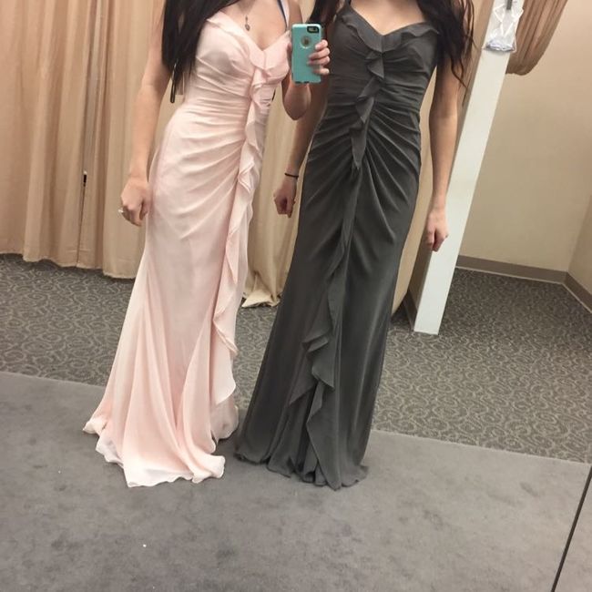 What are your bridesmaids wearing? My dress has a lot of lace all over and will be ivory over nude so the lace will really stand out. Should I put my bridesmaids in something less detailed? I was originally thinking of going with one of the...