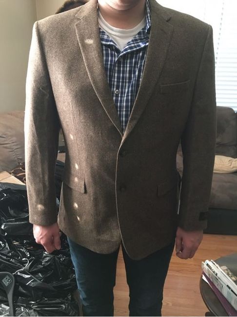 I need some opinions please! We're having a laid back rustic wedding FYI. The groomsmen are wearing Dark jeans with boots, white shirts and brown tweed vests. FH is wearing dark jeans and boots also, with a white shirt and tweed blazer. I'm wondering...
