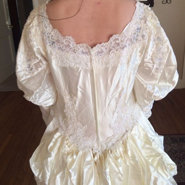 Tried you mother's wedding dress on? Just found this pic from a couple years ago when I was helping my mom move. We found her dress in the process, so I decided to try it on. She was tiny! Couldn't even zip it up all the way. Definitely not the style...