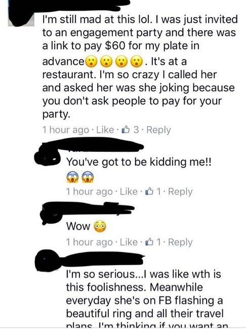 No question here, just... ick. This came out of a conversation about a kids' birthday party invite that required guests to pay $25 to attend. What are people thinking? Ugh.
