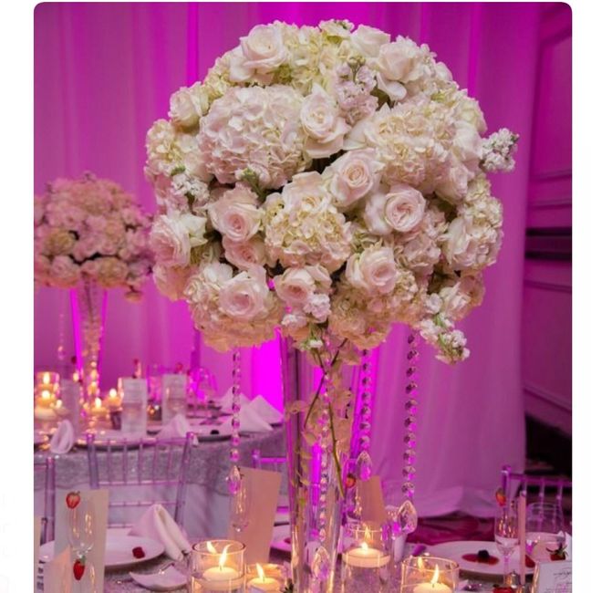 So excited and in love! We have 10 tables so half with medium (2 foot) vase, half with tall (3 foot) vase. Everything is white hydrangea and variety of blush tone roses