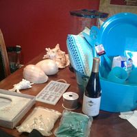 Well I've been working on center pieces. I didn't want flowers. So I came up with this idea since I want a beach themed wedding. I think I'm satisfied!