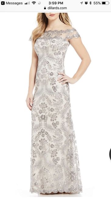 My mom loves this dress and is thinking of wearing it to my wedding! I don’t have a problem with it and I want her to look and feel beautiful! My dress is ivory and is a ball gown. Any thoughts?