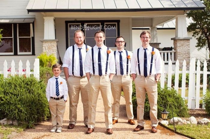 I am absolutely in love with this look for my ring bearer (5yr old son). I am trying to make the groomsmen match this with a more grown up look. I’m thinking light khaki linen pants, white shirts with rolled sleeves rolled, suspenders and a tie. I...