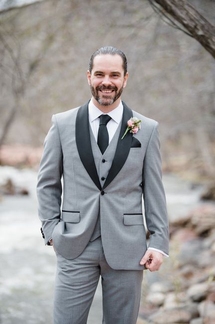 My fiance has decided that he will wear a grey suit to the wedding. I tried to persuade him that black would be better, but he insists on grey, and I respect his decision about his own clothing. Actually, the suit he has ordered is very dapper:...