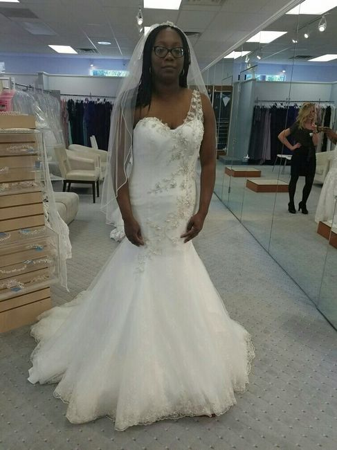After going to three bridal shops I finally said Yes to the dress. I'm so excited and can't wait to walk down the aisle. Have to order a bigger size but with alterations it will be perfect.