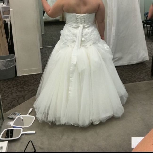 My dress has a gorgeous tulle bottom. The boutique said they'll need to add loops to the dress for the bustle but don't have any pictures of what it'll look like. Has anyone else here added a bustle to a tulle bottom and do you have pictures? I'm...