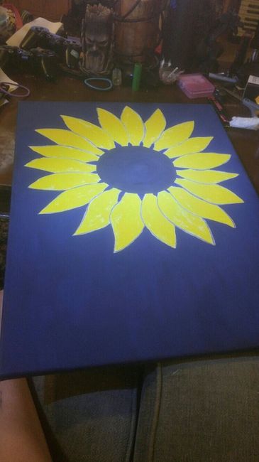 What do you think of my DIY Guestbook so far? I had an extra canvas and some paint and decided to go for it. It still needs some work. My idea is to have the guests sign the petals of the sunflower.
